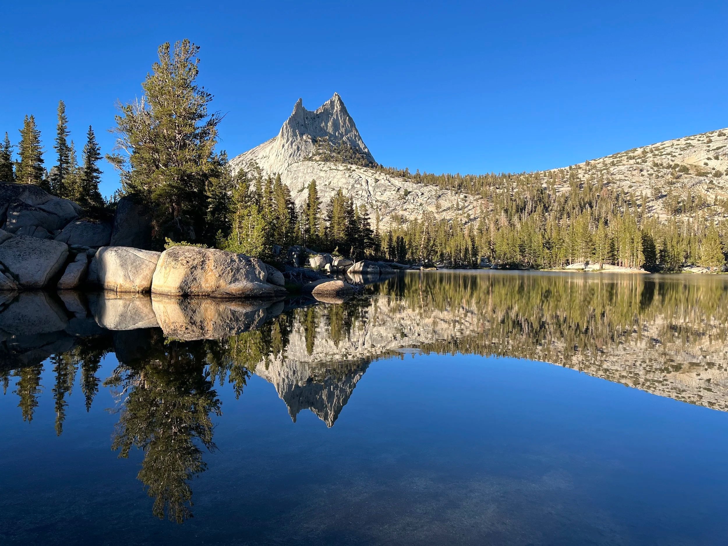 We enjoy a relaxed morning before descending through forest and open granite back to Tuolumne Meadows, completing a full high-country circuit.